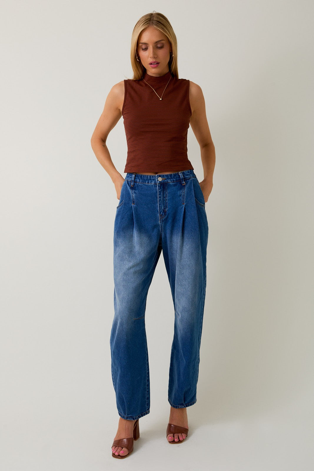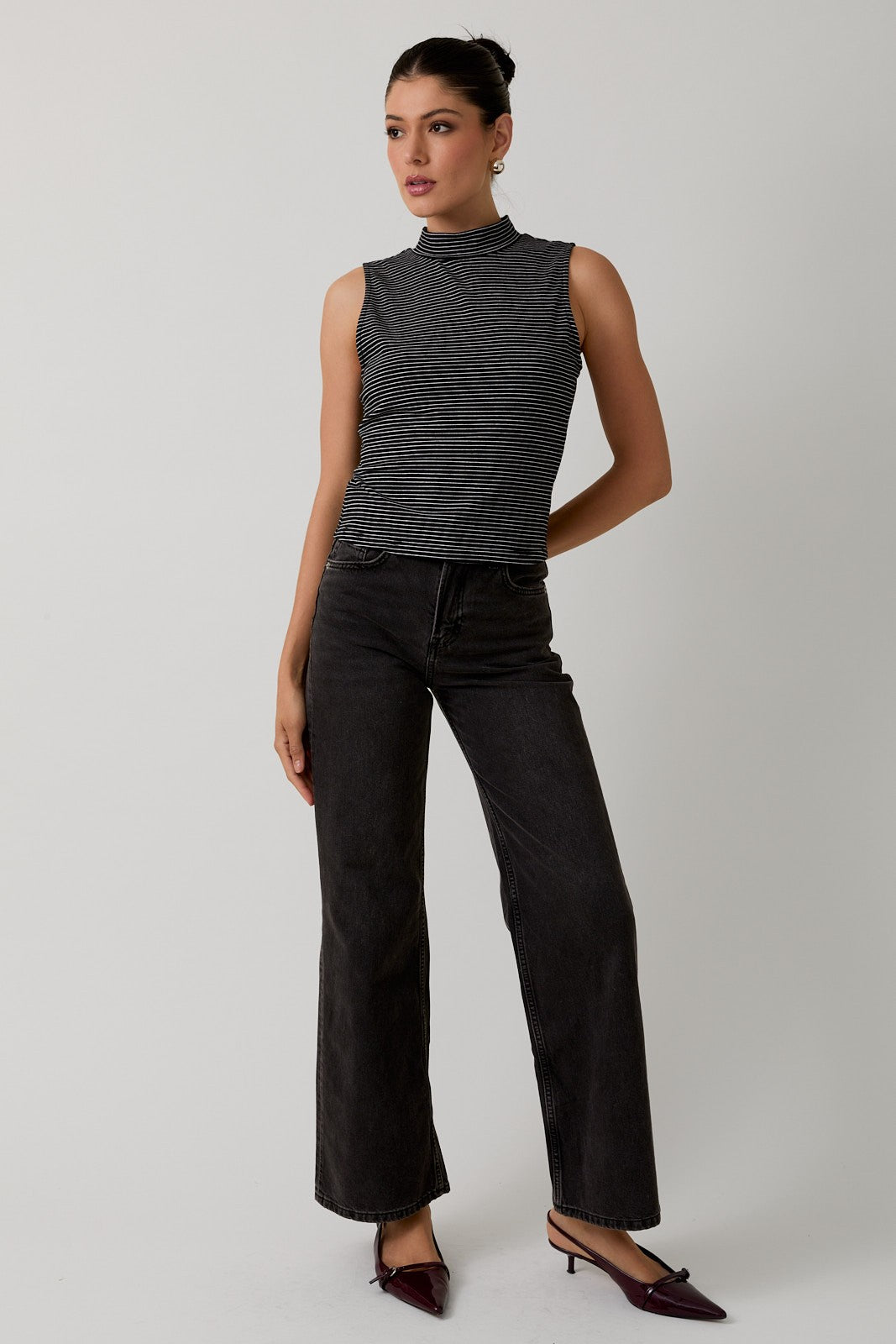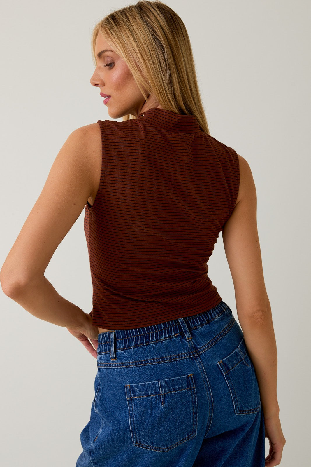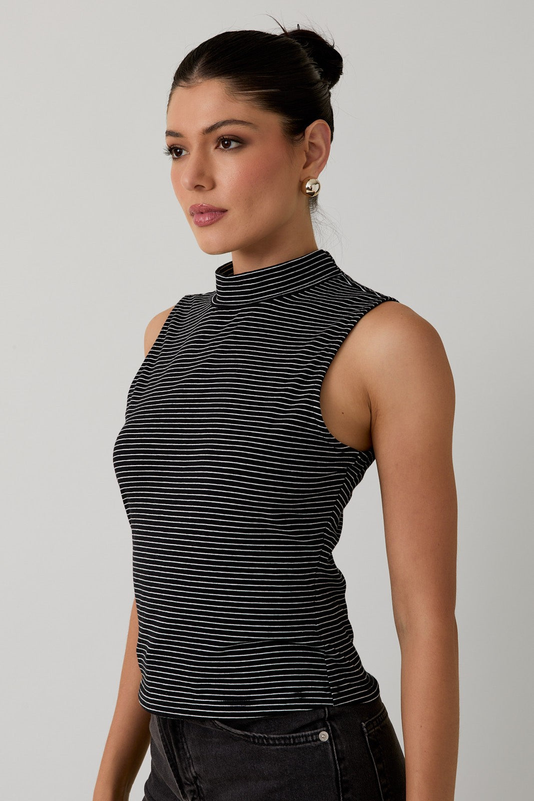 PRE ORDER 10/3-Mock Neck Sleeveless Stripe Knit Top - Cotton Blend